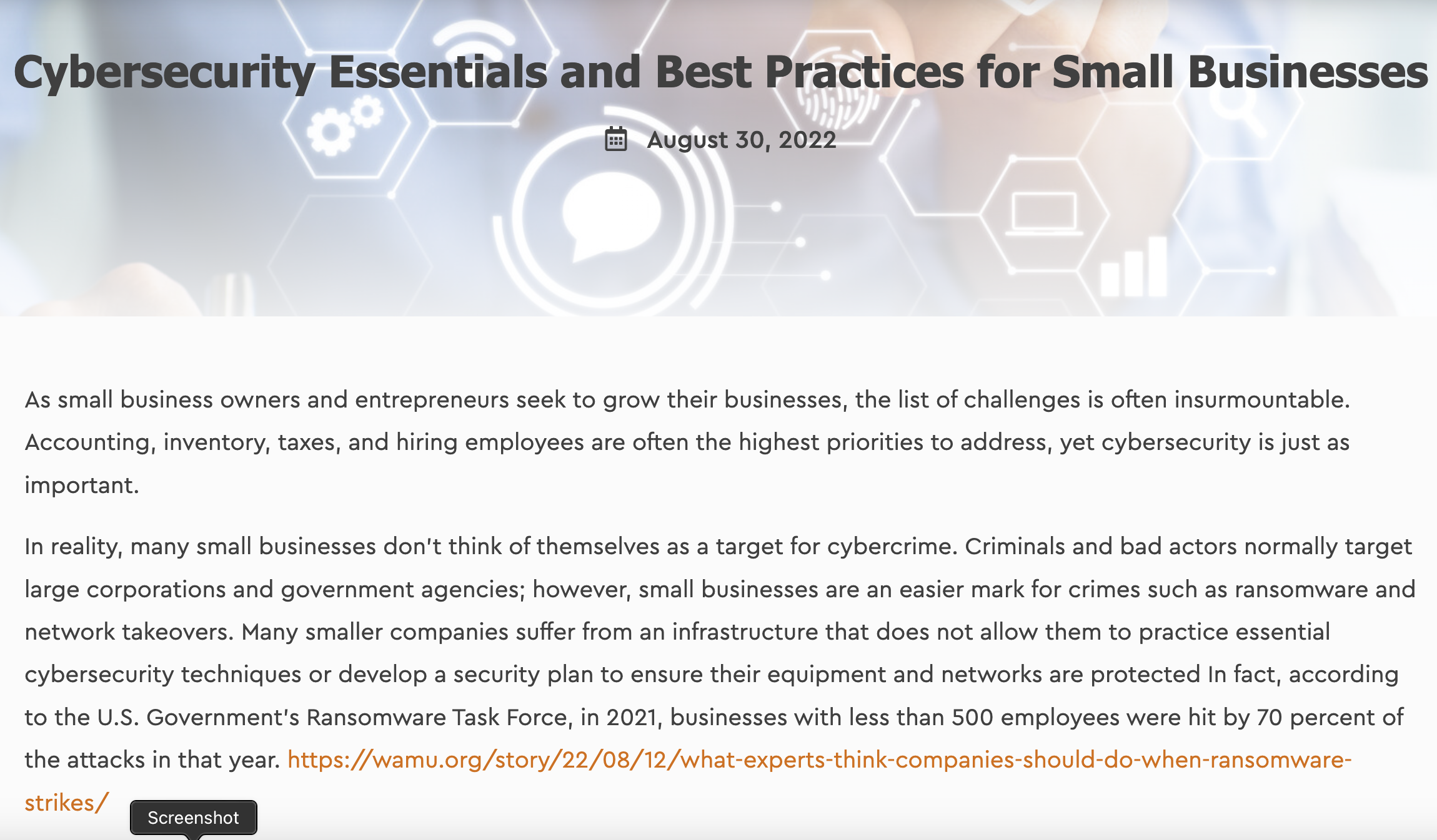 Wrote monthly blog posts focused on cybersecurity topics for IT client. Blogs were cross-promoted on the client’s LinkedIn.